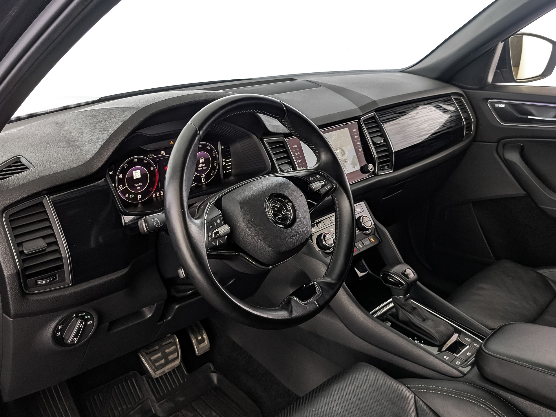 • Спортивное 3-спицевое кожаное рулевое колесо с управлением радио, телефоном и DSG